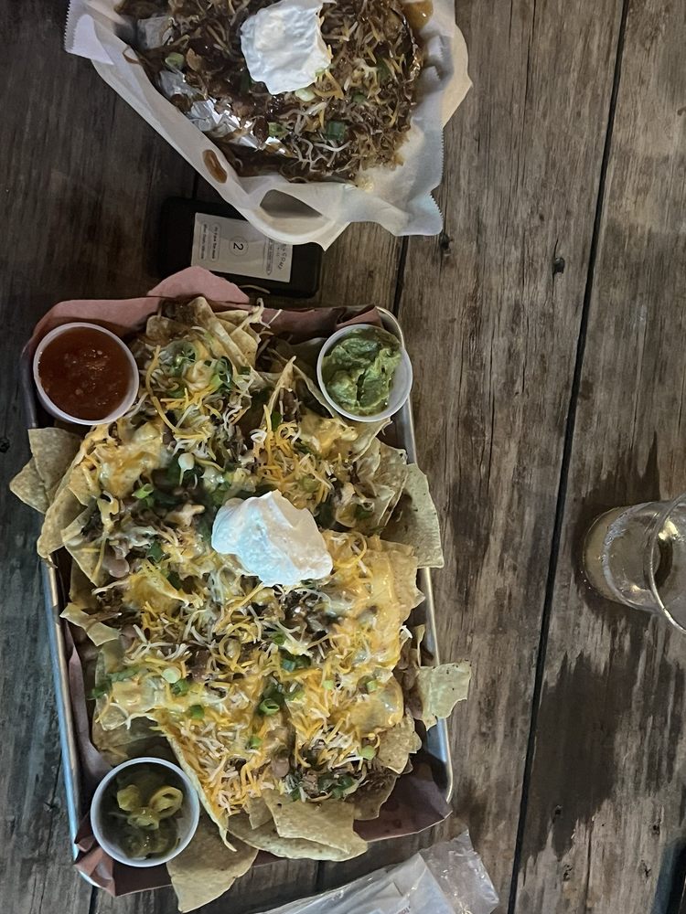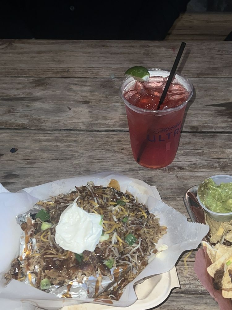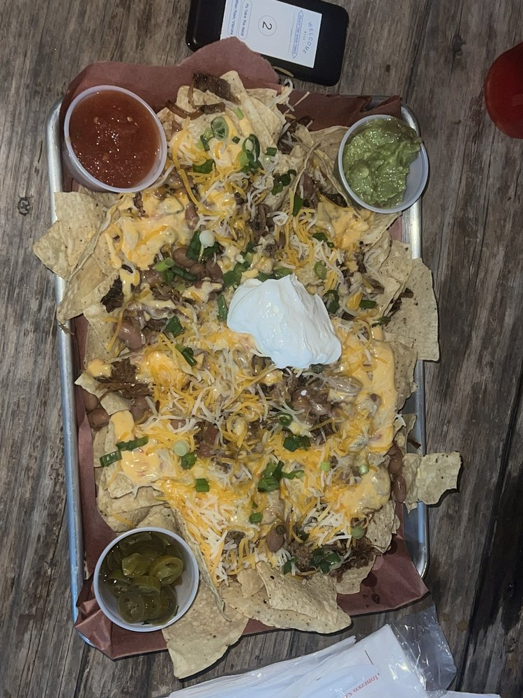 Guests appreciate the drink specials and the quality of food available, including popular items like brisket sandwiches and pulled pork nachos. There's also ample parking available on-site.